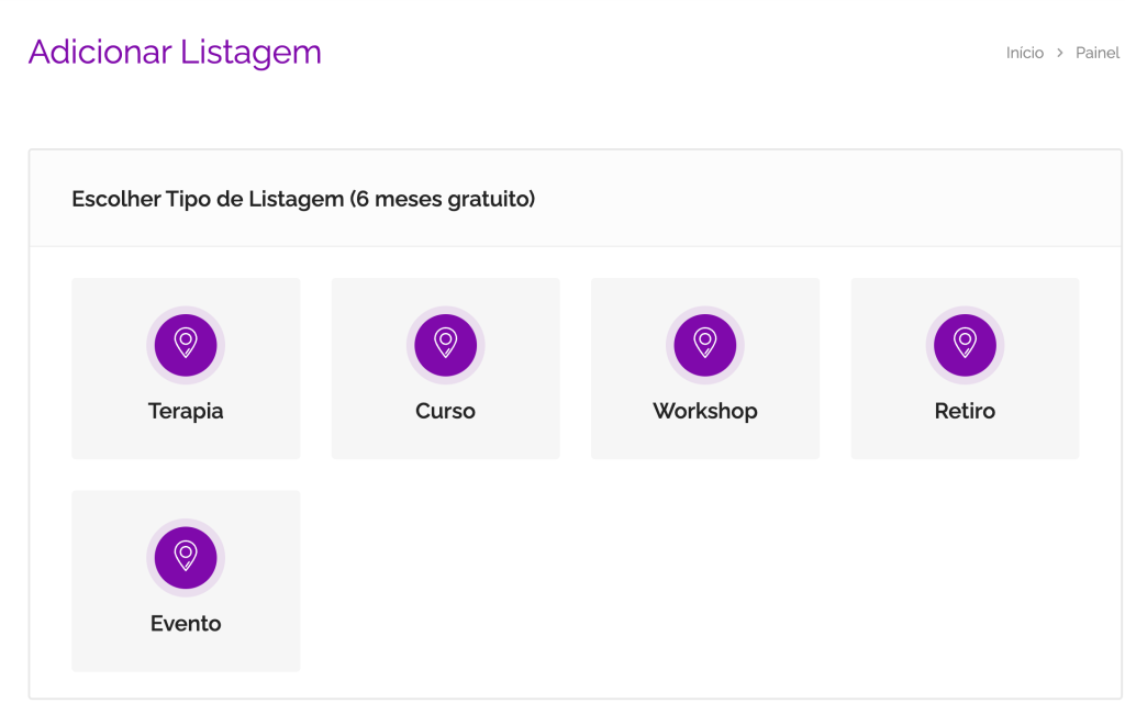 Criar novas listagens de terapias, cursos, eventos ou workshops