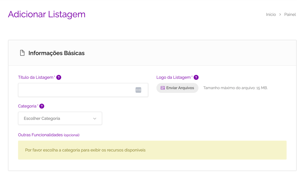 Para começar, preencha todas as informações básicas (imagem acima) da sua listagem.