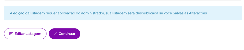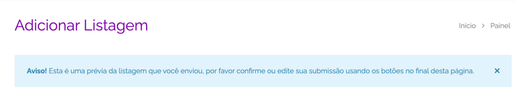 Após salvar e submeter a sua listagem, ela será enviada para aprovação do administrador.